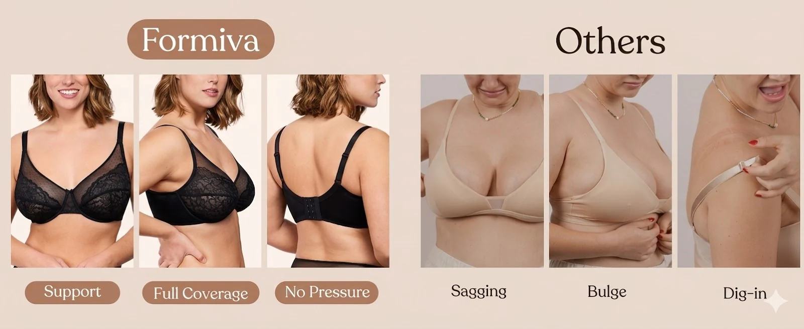 • Charming Cleavage Support Bra for Sagging Breast: 2-ply sling on the inner cup and the rigid inner mesh will forward shape your bust with good uplift and separation.
